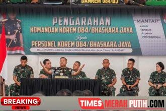 Surabaya – Media Indonesia Times | Komandan Resor Militer (Danrem) 084/Bhaskara Jaya, Brigjen TNI Kohir, memberikan pengarahan kepada seluruh personel ...