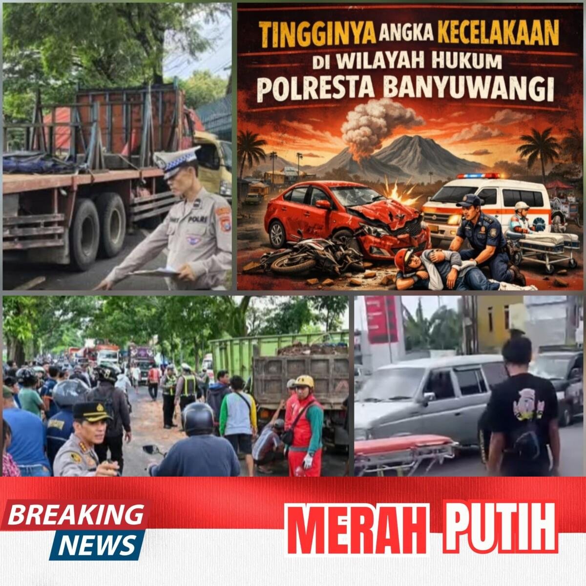 BANYUWANGI –Times Merah putih.com//Angka kecelakaan lalu lintas di wilayah hukum Polresta Banyuwangi sejak awal tahun 2026 kembali menunjukkan tren peningkatan yang mengkhawatirkan. Data yang dilansir media cetak Jawa Pos Radar Banyuwangi menyebutkan, jumlah kecelakaan di Banyuwangi telah menembus hingga 300 kasus per tahun.