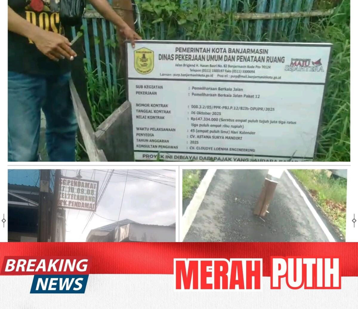 Berdasarkan data di papan proyek, pekerjaan tersebut dilaksanakan oleh CV Astana Surya Mandiri dengan pengawasan CV Cloudye Loenha Engineering, di bawah Bidang Jalan dan Jembatan Dinas PUPR Kota Banjarmasin. Nilai kontrak tercatat sebesar Rp147.334.000 dengan masa kerja 45 hari kalender.
