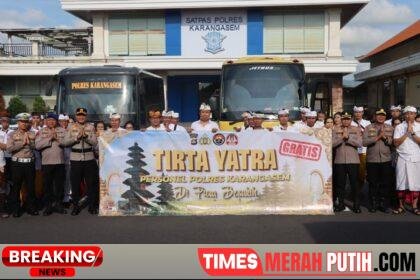 KARANGASEM – Times Merah putih.com//Kapolres Karangasem, AKBP I Made Santika, S.H., S.I.K., M.I.K., secara resmi melepas rombongan Tirtayatra Keluarga Besar Polres Karangasem yang hendak bertolak ke P...