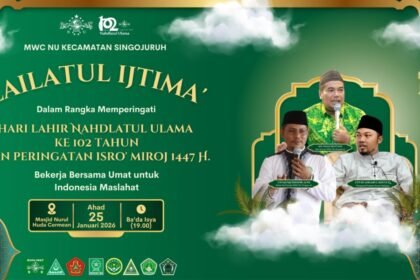 Banyuwangi -Times Merah Putih.com//25-1-2026-Majelis Wakil Cabang Nahdlatul Ulama (MWC NU) Kecamatan Singojuruh menggelar kegiatan Lailatul Ijtima dalam rangka memperingati Hari Lahir Nahdlatul Ulama ...