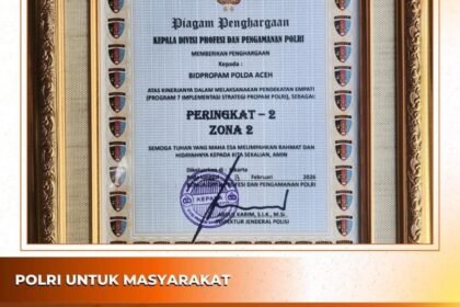 Banda Aceh – Times merah putih.com//Bidang Profesi dan Pengamanan (Bidpropam) Polda Aceh meraih prestasi gemilang dengan menyabet sejumlah penghargaan dari Kadivpropam Polri, Irjen Pol. Abdul Ka...