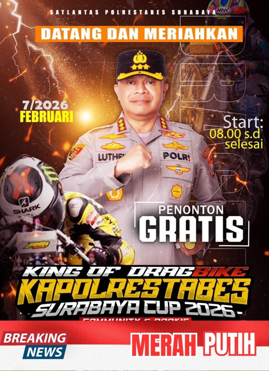 SURABAYA – Times Merah Putih.com//Menekan aksi balap liar yang masih marak terjadi di sejumlah ruas jalan kota dengan menyiapkan wadah resmi bagi para penggemar balap motor. Polrestabes Surabaya, adakan ajang King of Drag Bike Kapolrestabes Surabaya Cup 2026, kepolisian ingin mengalihkan aktivitas kebut-kebutan di jalan umum ke sirkuit resmi yang lebih aman dan terukur.