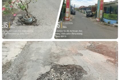 Banyuwangi – Times merah putih.com//Pemandangan tak biasa terlihat di tengah Kota Banyuwangi, tepatnya di wilayah Kelurahan Kertosari, Kecamatan Banyuwangi. Sejumlah lubang besar yang menganga di bada...