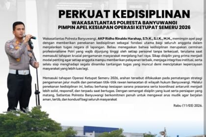 BANYUWANGI –Times Merah putih.com//Kedisiplinan menjadi kunci utama dalam menjalankan tugas sebagai aparat penegak hukum di lapangan. Hal tersebut ditegaskan oleh AKP. Ridho Rinaldo Harahap, S.Tr.K., ...