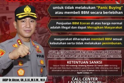 Lhokseumawe —Times Merah putih.com//Polres Lhokseumawe mengimbau masyarakat agar tidak melakukan panic buying atau membeli bahan bakar minyak (BBM) secara berlebihan, kamis (6/3/2026). Imbauan tersebu...
