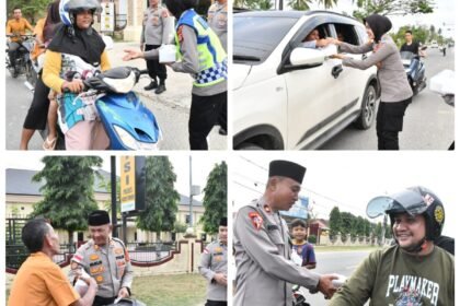 Polres Aceh Timur-Times Merah putih.com//jajaran Polda Aceh membagikan takjil atau makanan dan minuman berbuka puasa kepada pengguna jalan yang melintas di depan Mapolres Aceh Timur, Rabu (04/03/2026)...