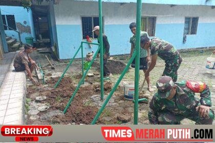 Banyuwangi – Timesmerahputih.com | Personel Koramil 06 Gambiran Kodim 0825 Banyuwangi menunjukkan kepedulian nyata terhadap kebugaran generasi muda melalui aksi pembangunan fasilitas olahraga di Pondo...