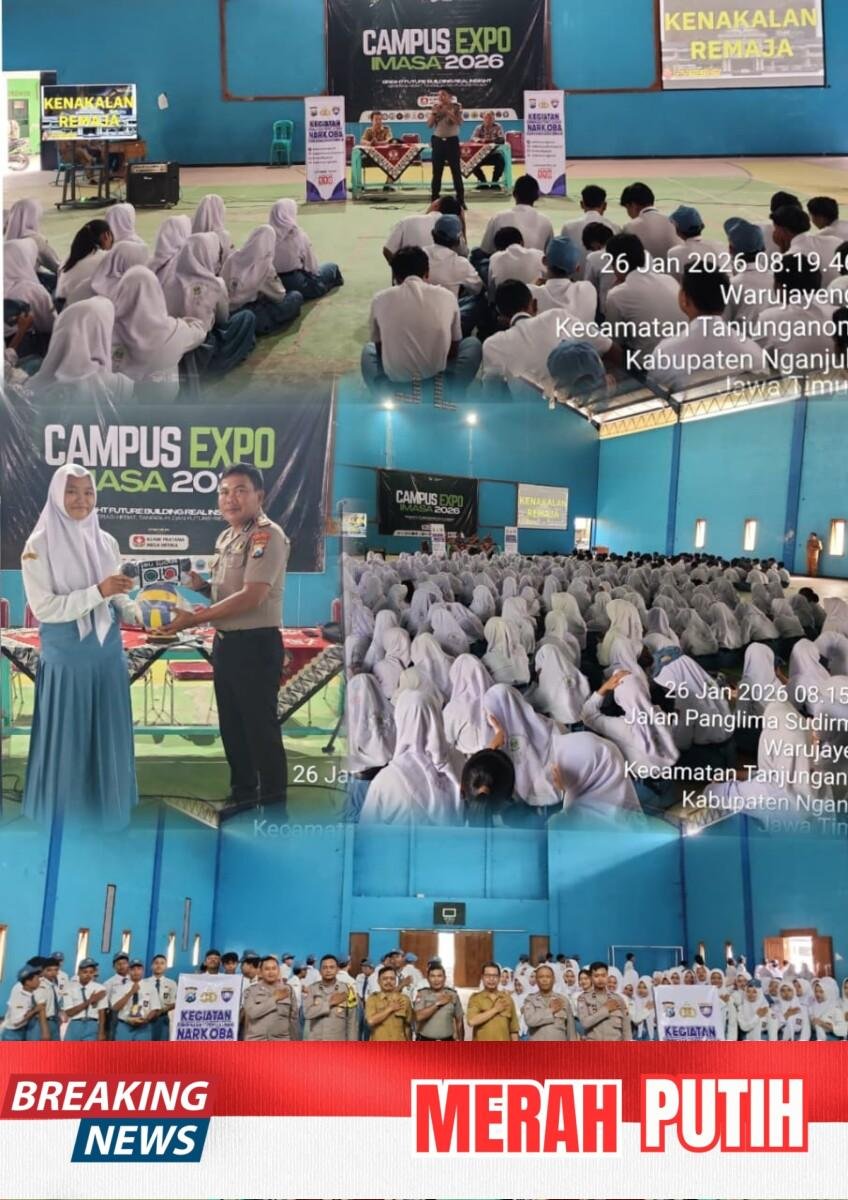 Nganjuk – Times Merah Putih.com//Satbinmas Polres Nganjuk menggelar kegiatan pembinaan dan penyuluhan tentang bahaya narkoba serta kenakalan remaja kepada siswa-siswi SMAN 1 Tanjunganom, Kecamatan Tanjunganom, Kabupaten Nganjuk, Senin (26/1/2026). Kegiatan yang berlangsung di aula sekolah tersebut bertujuan membentengi generasi muda dari pengaruh negatif pergaulan dan penyalahgunaan narkoba.