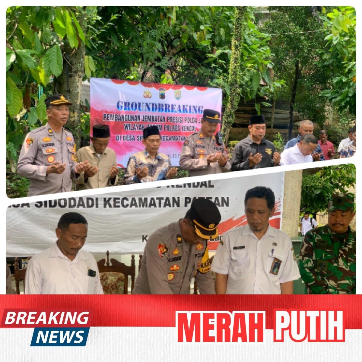 KENDAL-times merah putih.com//Polres Kendal melalui jajaran Polsek Patean melaksanakan peletakan batu pertama pembangunan Jembatan Presisi Polda Jawa Tengah di Dusun Tembelang RT 03 RW 05, Desa Sidodadi, Kecamatan Patean, Kabupaten Kendal, Rabu (11/2/2026) pukul 09.00 WIB. Kegiatan berlangsung aman dan kondusif hingga selesai pukul 10.30 WIB.