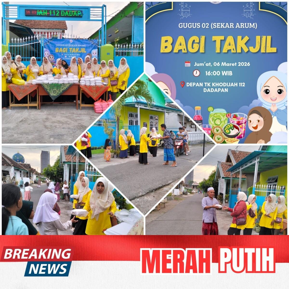“Alhamdulillah, meskipun cuaca sedikit gerimis, acara bagi-bagi takjil gratis hari ini tetap berjalan lancar berkat kekompakan teman-teman Gugus 02 Sekar Arum,”