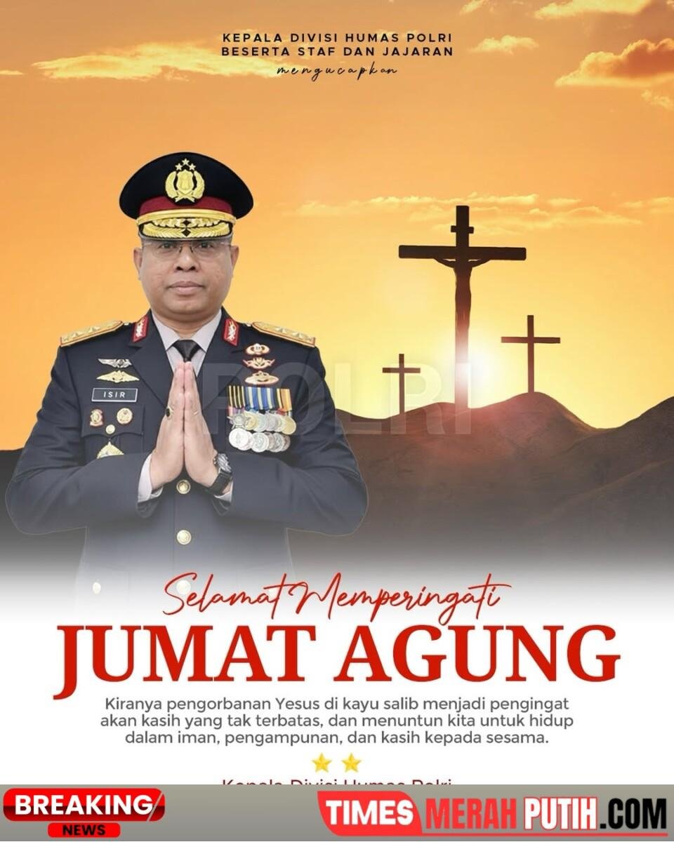 JAKARTA –Times Merah putih.com//Suasana khidmat menyelimuti peringatan Jumat Agung tahun ini. Di tengah refleksi mendalam umat Kristiani atas pengorbanan dan kasih, Kepala Divisi Humas Polri, Irjen Pol. Johnny Eddizon Isir, S.I.K., M.T.C.P., turut menyampaikan ucapan penuh makna yang menyentuh nilai kemanusiaan dan spiritualitas.