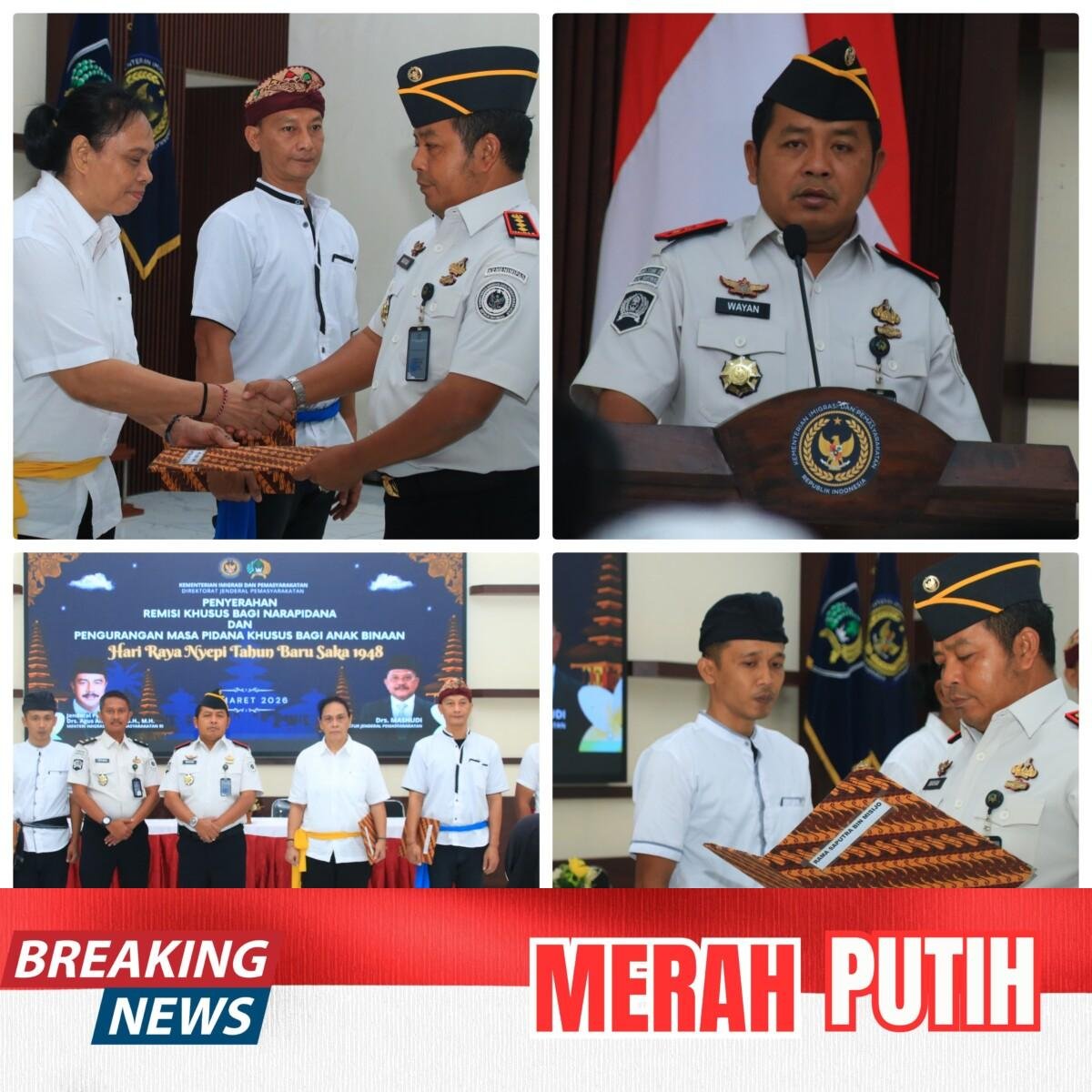 BANYUWANGI -Times Merah putih.com//Keheningan Hari Raya Nyepi Tahun Baru Saka 1948 membawa berkah tersendiri bagi warga binaan di Lembaga Pemasyarakatan (Lapas) Kelas IIA Banyuwangi. Sebanyak lima warga binaan beragama Hindu resmi menerima Remisi Khusus (RK) atau pengurangan masa pidana sebagai bentuk penghargaan atas perubahan perilaku mereka selama menjalani masa pembinaan.