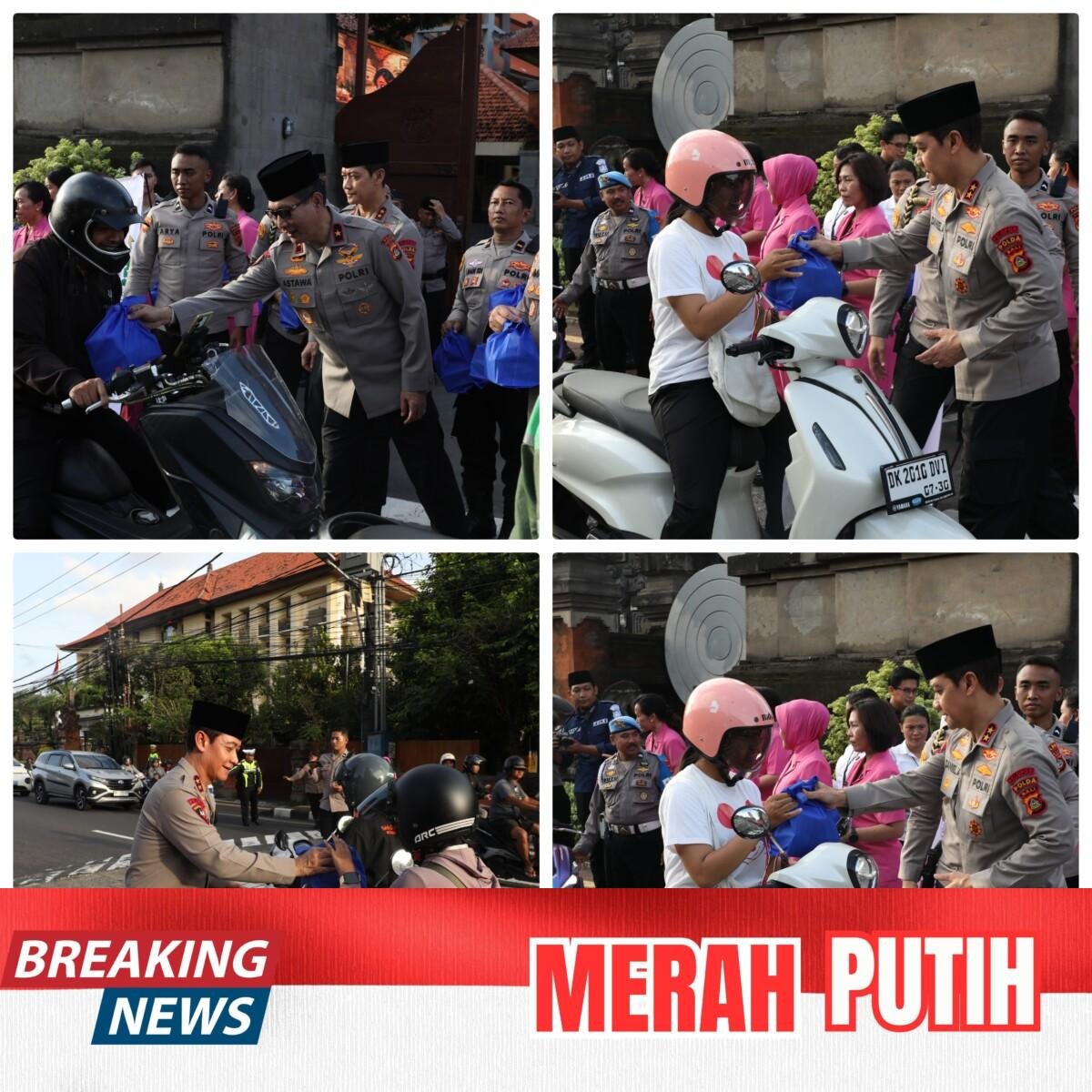 Kapolda Bali-Times merah putih.com//**Daniel Adityajaya**, S.H., S.I.K., M.Si., didampingi Wakapolda Bali **I Made Astawa**, S.I.K., bersama Ketua Bhayangkari Daerah Bali **Ny. Didit Daniel Adityajaya** dan Wakil Ketua Bhayangkari Daerah Bali **Ny. Silvia Made Astawa**, serta para Pejabat Utama **Polda Bali** melaksanakan kegiatan berbagi takjil kepada masyarakat di halaman depan Mapolda Bali.