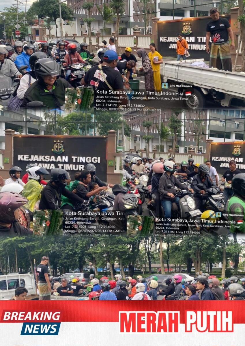 Sore itu, denyut kemanusiaan terasa hidup di sepanjang Jalan Ahmad Yani, tepat di depan Kantor Kejaksaan Tinggi Jawa Timur. Kendaraan berlalu-lalang seperti biasa, roda kehidupan kota Surabaya tetap berputar dalam ritme kesibukan yang tak pernah berhenti.