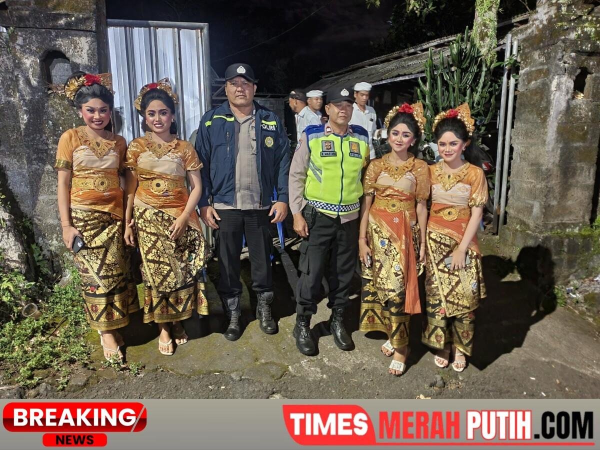Times Merah putih.com//Jajaran Polsek Bebandem melaksanakan pengamanan ketat dalam acara hiburan rakyat pementasan Bondres Lolak CS yang digelar di Jaba Pura Puseh, Desa Adat Umanyar, Desa Bhuana Giri, Kecamatan Bebandem, Sabtu (04/04/2026) malam.