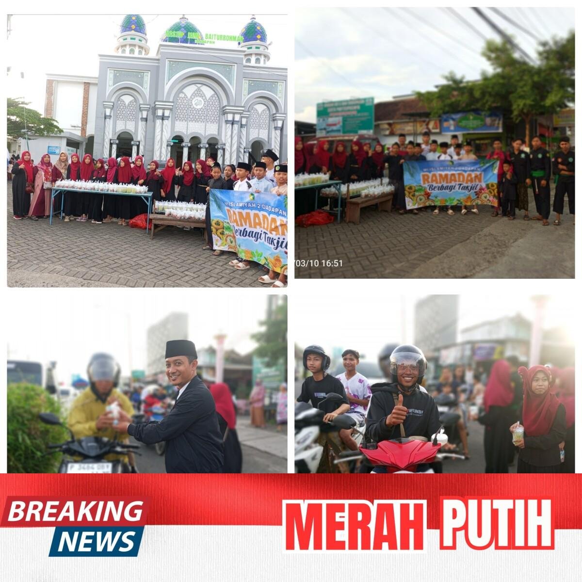 DADAPAN KABAT -Times Merah putih.com// 10 Maret 2026 ,Dalam rangka menyemarakkan bulan suci Ramadan, MI Islamiyah 2 Dadapan menggelar kegiatan berbagi ratusan takjil gratis kepada masyarakat. Kegiatan tersebut dilaksanakan di depan Masjid Jami Baiturrahman, Desa Dadapan, Kecamatan Kabat, Kabupaten Banyuwangi.