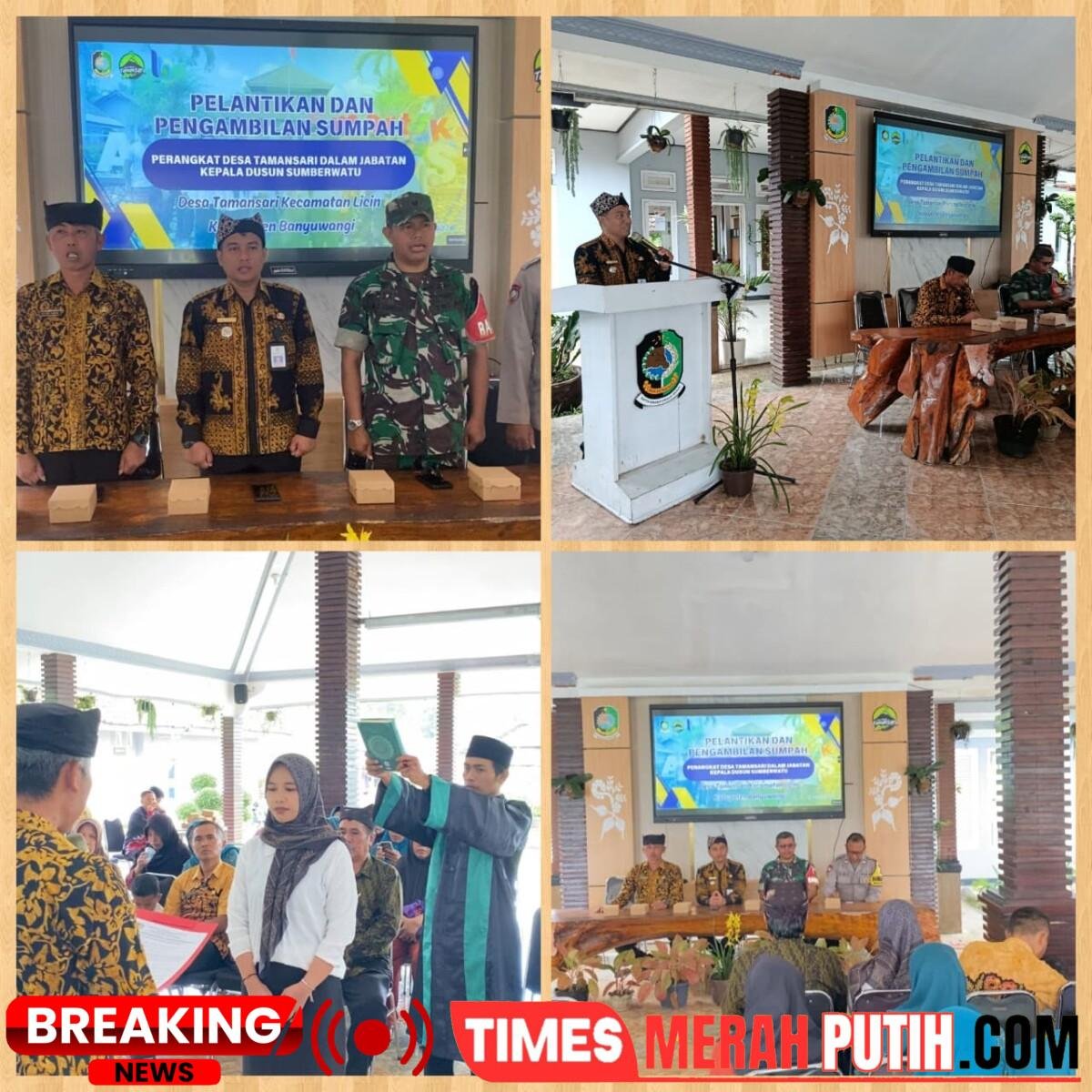 Banyuwangi – Camat Licin Donny Arselo Sofyan memimpin pelantikan dan pengambilan sumpah Perangkat Desa Tamansari dalam jabatan Kepala Dusun Sumberwatu, yang digelar di Balai Desa Tamansari, Kecamatan ...