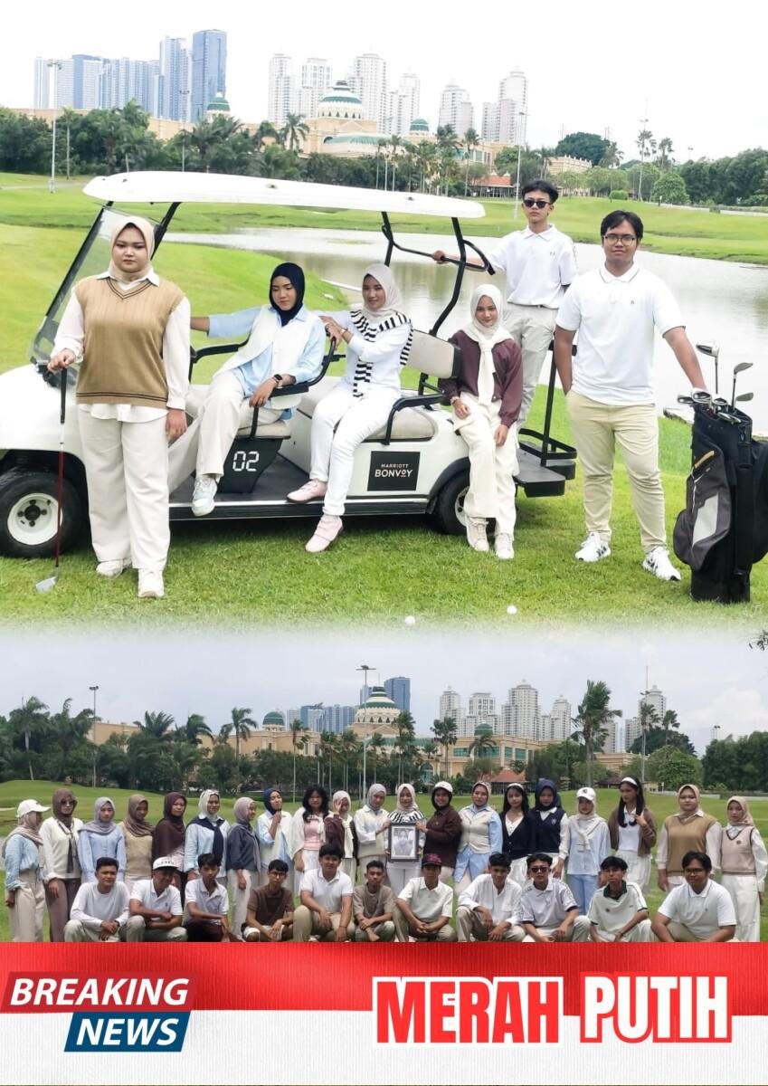 Lapangan golf yang luas, tertata rapi, dan penuh estetika tersebut menjadi simbol prestise sekaligus menghadirkan kesan profesional, modern, dan berkelas dalam dokumentasi kenangan masa sekolah para siswa.