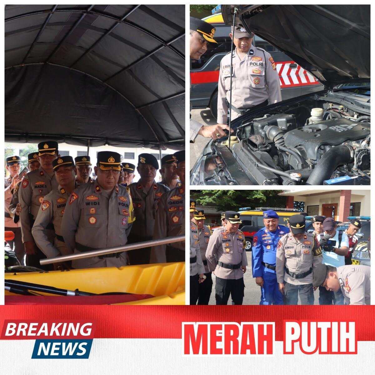 Pemeriksaan kendaraan taktis (Rantis), mobil double cabin, hingga sepeda motor operasional yang akan digunakan untuk menjangkau wilayah pelosok dan medan berat maupun alat alat seperti Chainsaw, perahu karet dll