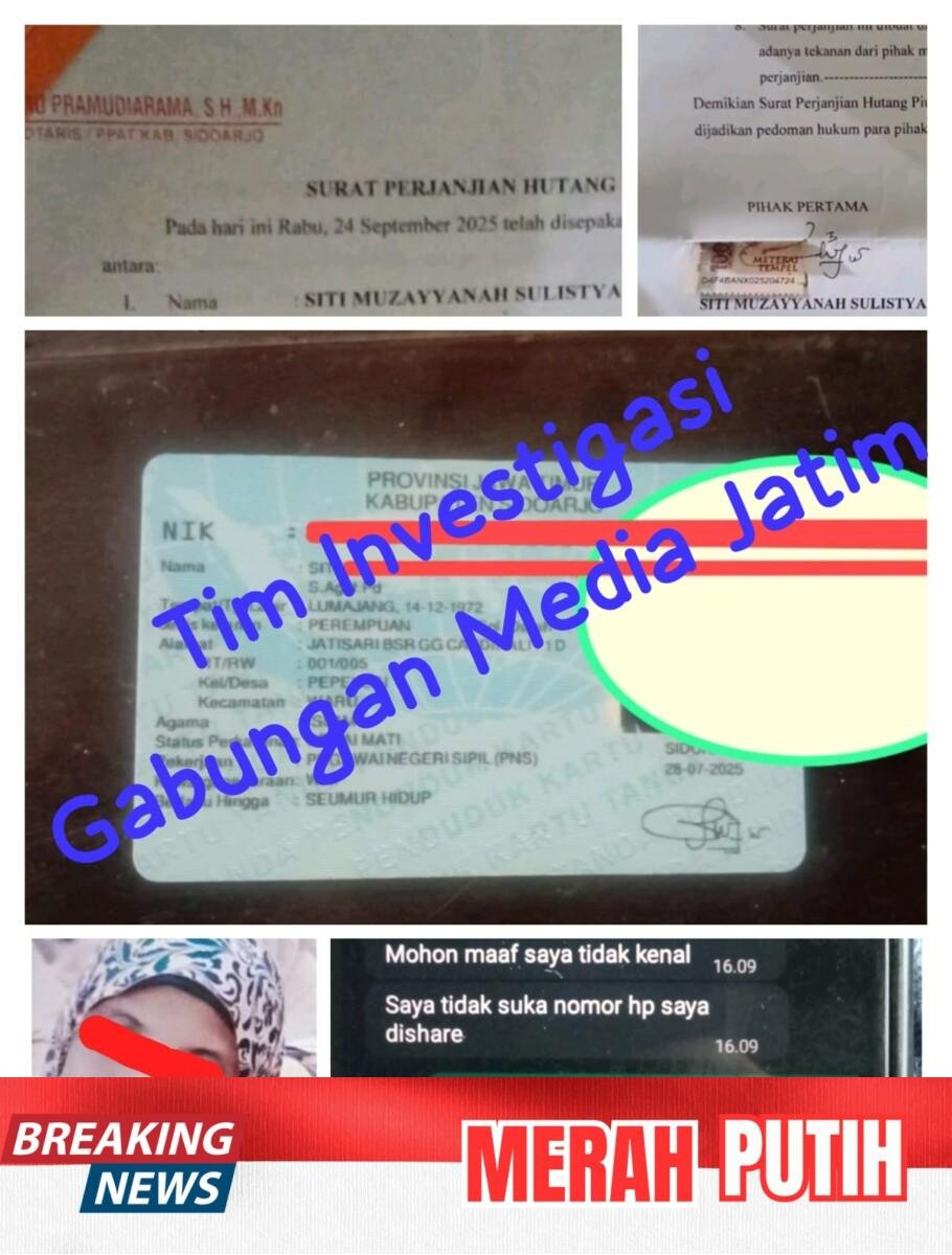 Sidoarjo, Minggu, 25 Januari 2026 – Media Indonesia Times | Bermula ada seseorang oknum guru yang disinyalir berdinas aktif atau seorang PNS (pegawai negeri sipil) yang memiliki kepentingan untuk mengurus surat ahli waris di notaris, karena oknum guru siti tidak mempunyai biaya maka ada beberapa pengurus yang mencarikan modal atau dana talangan, untuk mengurus surat ahli waris oknum guru siti tersebut, dan pengurus menemukan pemodal yang berinisial GA, pengurus mencoba berkomunikasi dengan GA sebagai pemodal serta GA pemodal menyetujui permohonan peminjaman uang untuk pengurusan ahli waris oknum guru yang diduga bernama siti.