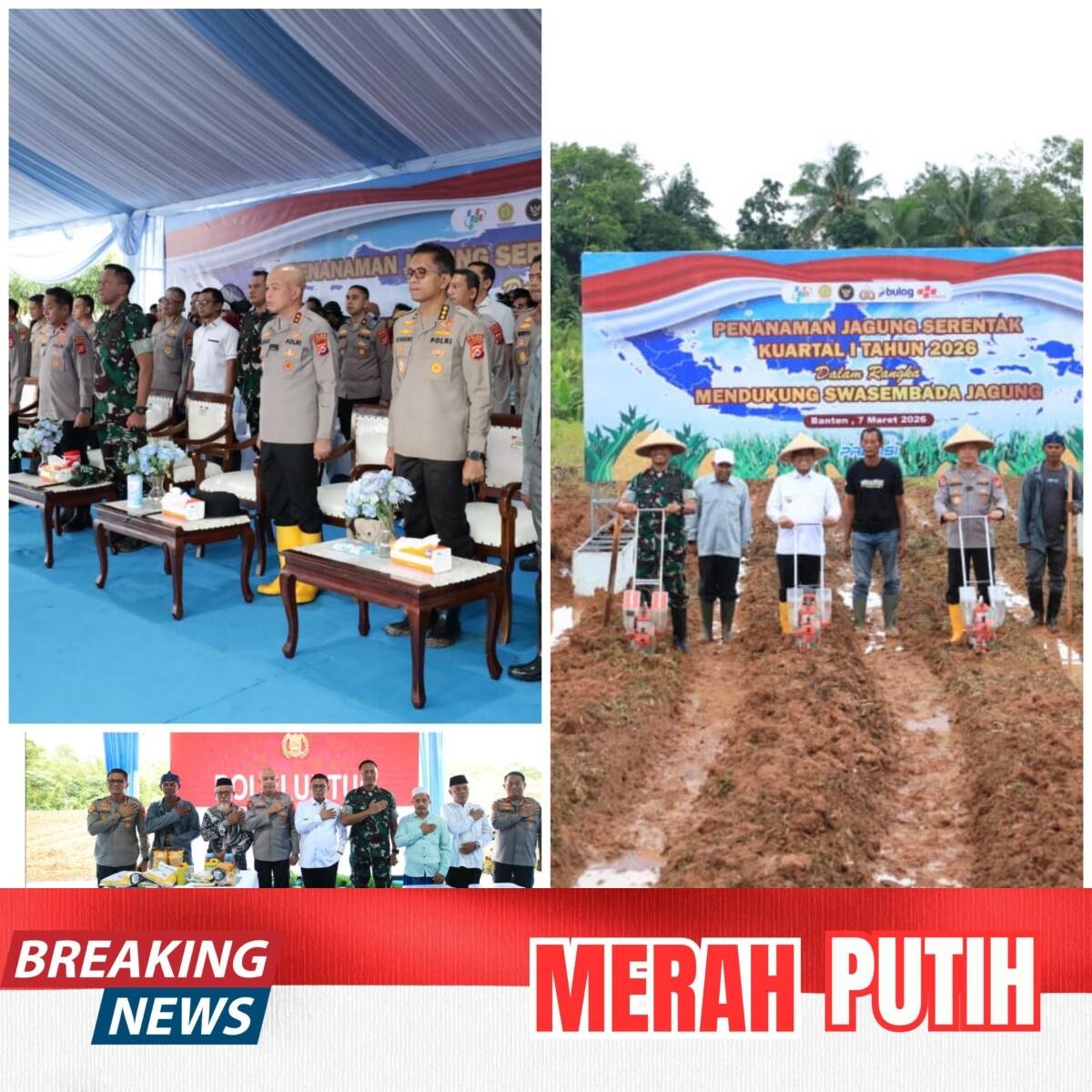 Serang – Times Merah putih.com//Polda Banten melaksanakan kegiatan Penanaman Jagung Serentak Kuartal I Tahun 2026 dalam rangka mendukung program swasembada pangan nasional yang dilaksanakan secara serentak dan dilanjutkan dengan Zoom Meeting yang dipimpin langsung oleh Kapolri, pada Sabtu (07/03).