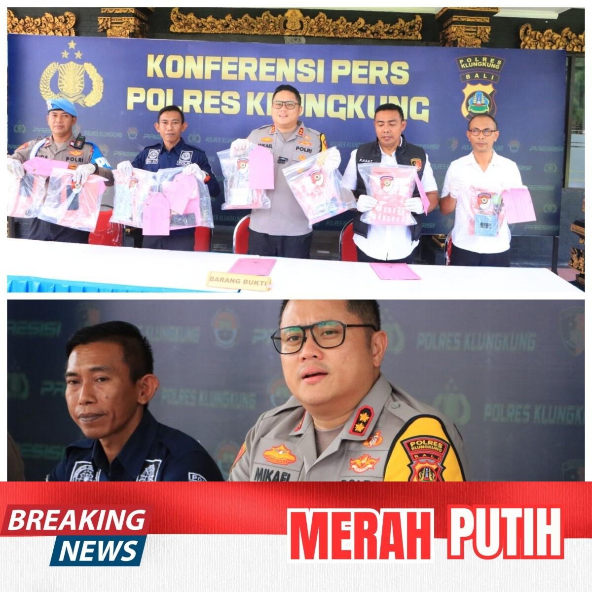 Polres Klungkung —Times Merah putih.com//Polres Klungkung menggelar press release pengungkapan tindak pidana narkotika yang berlangsung di depan lobi Polres Klungkung. Kegiatan tersebut dipimpin langsung oleh Kapolres Klungkung AKBP Mikael Hutabarat, S.H., S.I.K., M.H., didampingi Kasat Resnarkoba AKP I Wayan Gede Mudana, S.H., M.H., Ps Kasi Humas Polres Klungkung Iptu I Dewa Nyoman Alit Purnawibawa, S.H., Kanit Sidik Ipda I Ketut Sanjaya, S.H., serta Ps Kanit Provost Aiptu I Nengah Sudayadnya, (13/3).