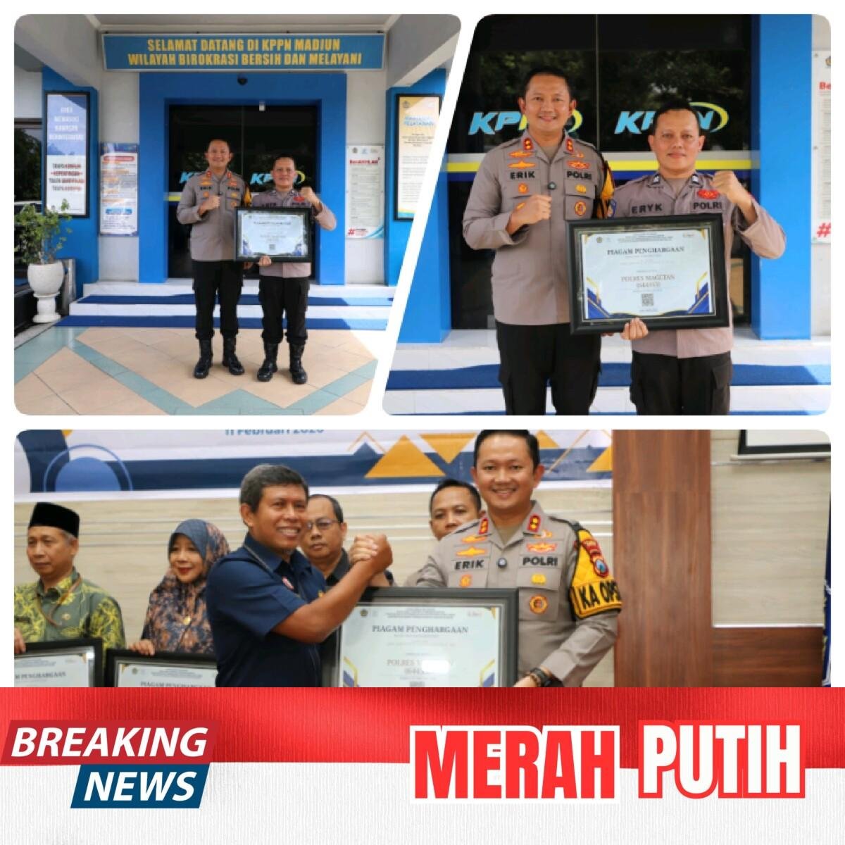 Penghargaan tersebut diterima langsung oleh Kapolres Magetan, AKBP Raden Erik Bangun Prakasa, bertempat di Kantor Pelayanan Perbendaharaan Negara (KPPN) Madiun, Jalan Salak, Kota Madiun, Rabu (11/2/2026) yang lalu.