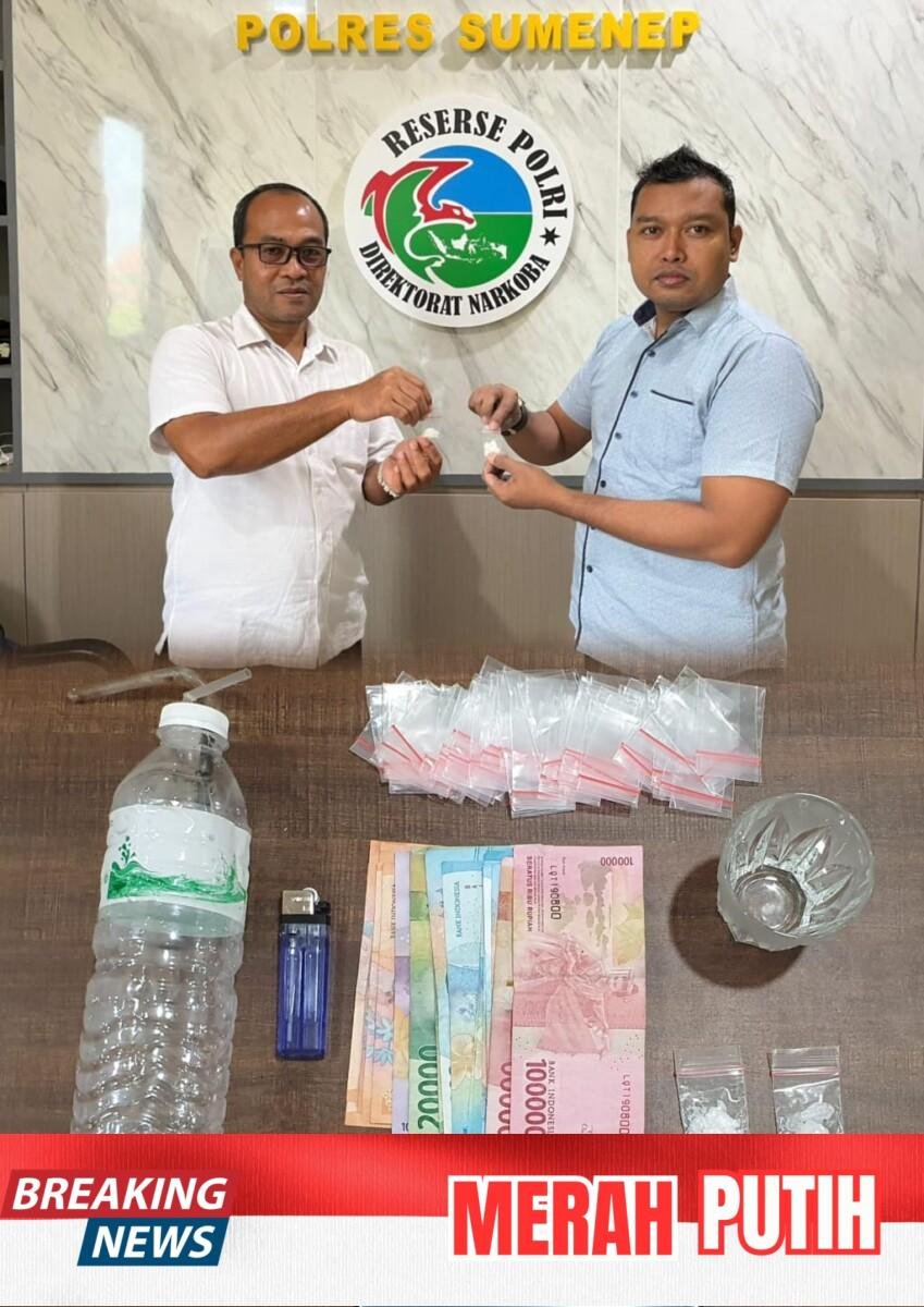 Berdasarkan informasi tersebut, tim Satresnarkoba Polres Sumenep Polda Jatim melakukan penggerebekan dan berhasil menemukan barang bukti berupa sabu seberat 2 gram, alat hisap, serta sejumlah uang tunai.