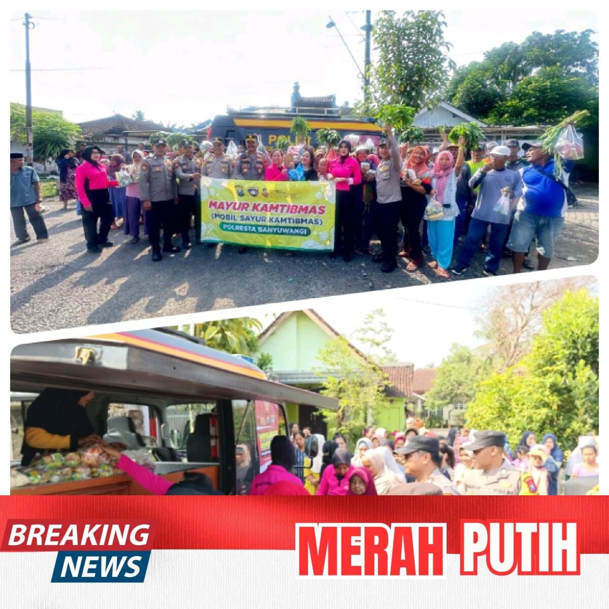 Dalam kegiatan Mayur Kamtibmas tersebut, Polresta Banyuwangi membagikan berbagai kebutuhan pokok dan hasil pertanian kepada warga secara gratis.