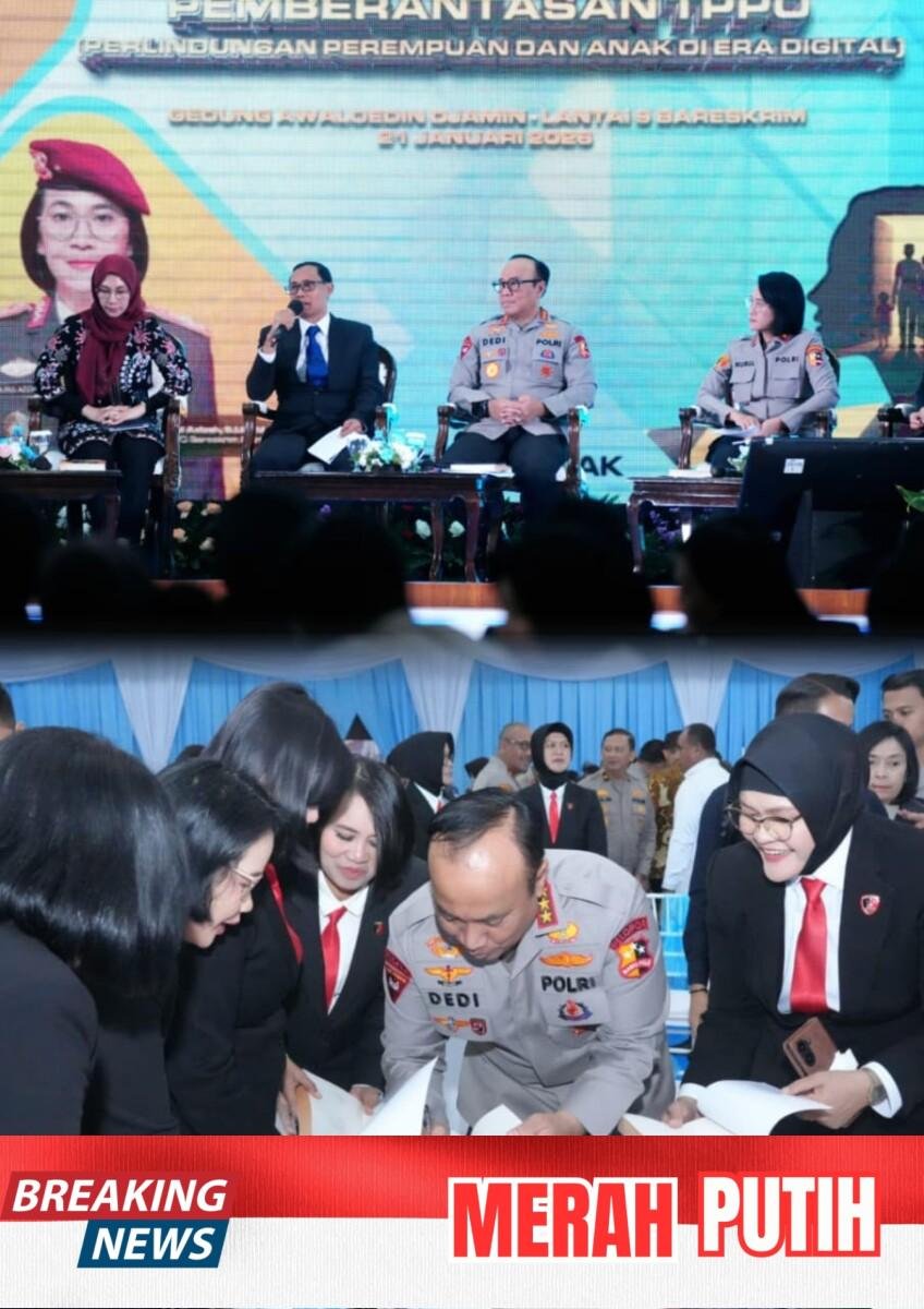 “Dalam transformasi penanganan TPPO dan implementasi KUHAP dan KUHP baru, perlu disampaikan bahwa untuk paradigmanya ada national standard setter, pembuktian ilmiah, victim centric (kelompok rentan), kontruksi berlapis terhadap KUHP dan UU TPPO investigasi jaringan, follow the money (aset), terpadu lintas lembaga (LPSK/PPATK) karena tidak akan bisa ditangani oleh Polri sendiri. Harus betul-betul kerja sama dengan stakeholder lainnya.