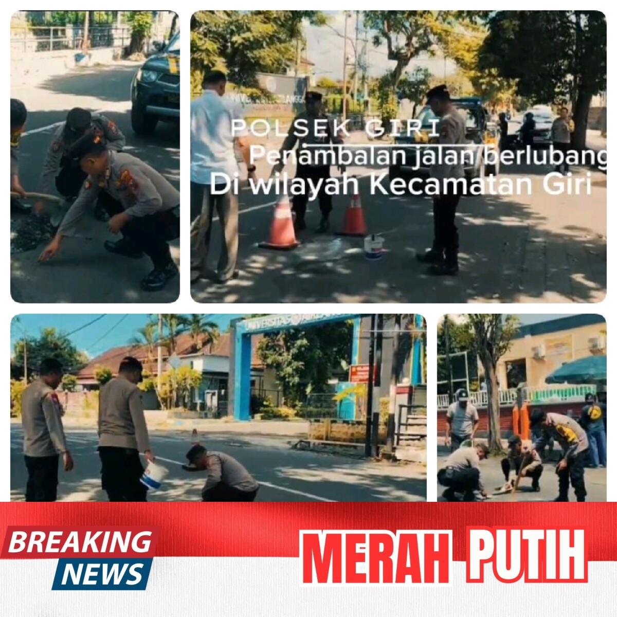 Banyuwangi –Times Merah Putih.com//Dalam rangka meningkatkan keselamatan dan kenyamanan masyarakat pengguna jalan, Polsek Giri Polresta Banyuwangi melaksanakan kegiatan penambalan jalan berlubang di sejumlah titik rawan kecelakaan yang berada di wilayah hukum Polsek Giri. Kegiatan tersebut dilaksanakan pada Selasa (03/02/2026) sebagai bentuk respons cepat kepolisian terhadap kondisi infrastruktur jalan yang berpotensi membahayakan pengguna jalan.