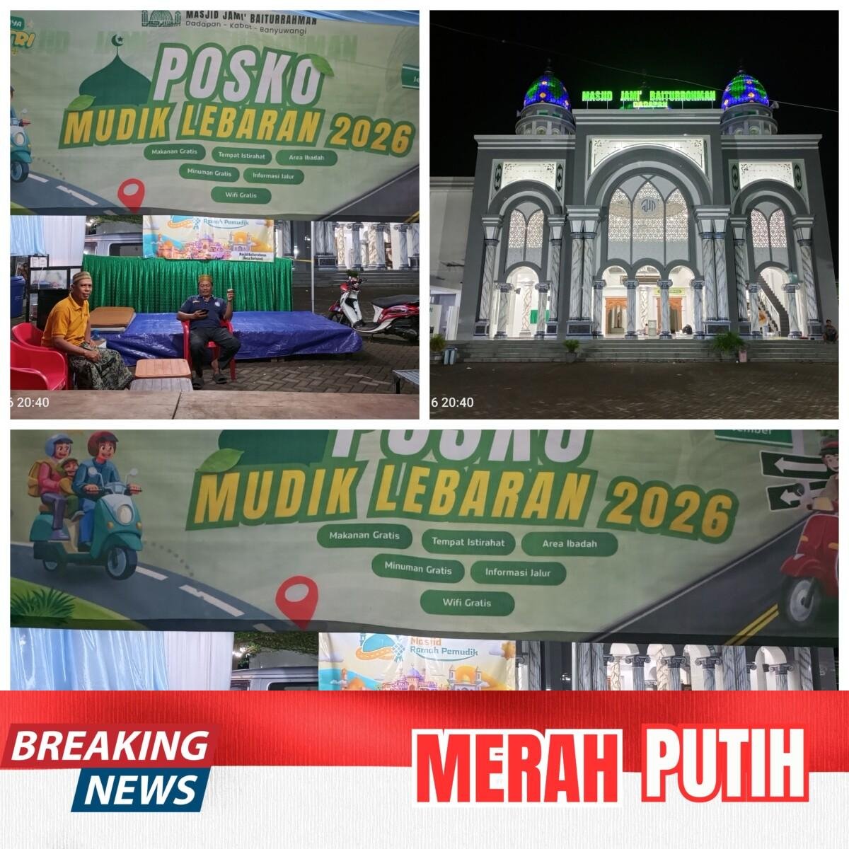 DADAPAN KABAT -Times Merah putih.com// 16- Maret 2026 ,Dalam rangka memberikan rasa aman dan nyaman bagi masyarakat yang melakukan perjalanan mudik pada Hari Raya Idul Fitri 1447 Hijriah tahun 2026, pengurus Takmir Masjid Jami Baiturrahman Dadapan membuka pos mudik yang berlokasi di depan masjid dan beroperasi selama 24 jam.