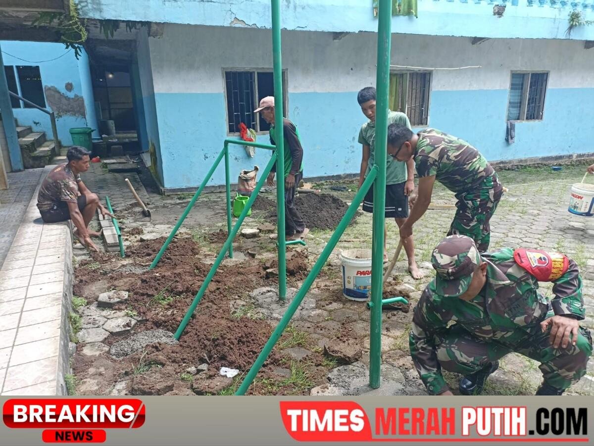 Banyuwangi – Timesmerahputih.com | Personel Koramil 06 Gambiran Kodim 0825 Banyuwangi menunjukkan kepedulian nyata terhadap kebugaran generasi muda melalui aksi pembangunan fasilitas olahraga di Pondok Pesantren (Ponpes) Darul Amin. Anggota Koramil bergotong royong membangun instalasi pull-up dan sit-up permanen guna mendukung kesehatan fisik para santri, Kamis (09/04/2026).