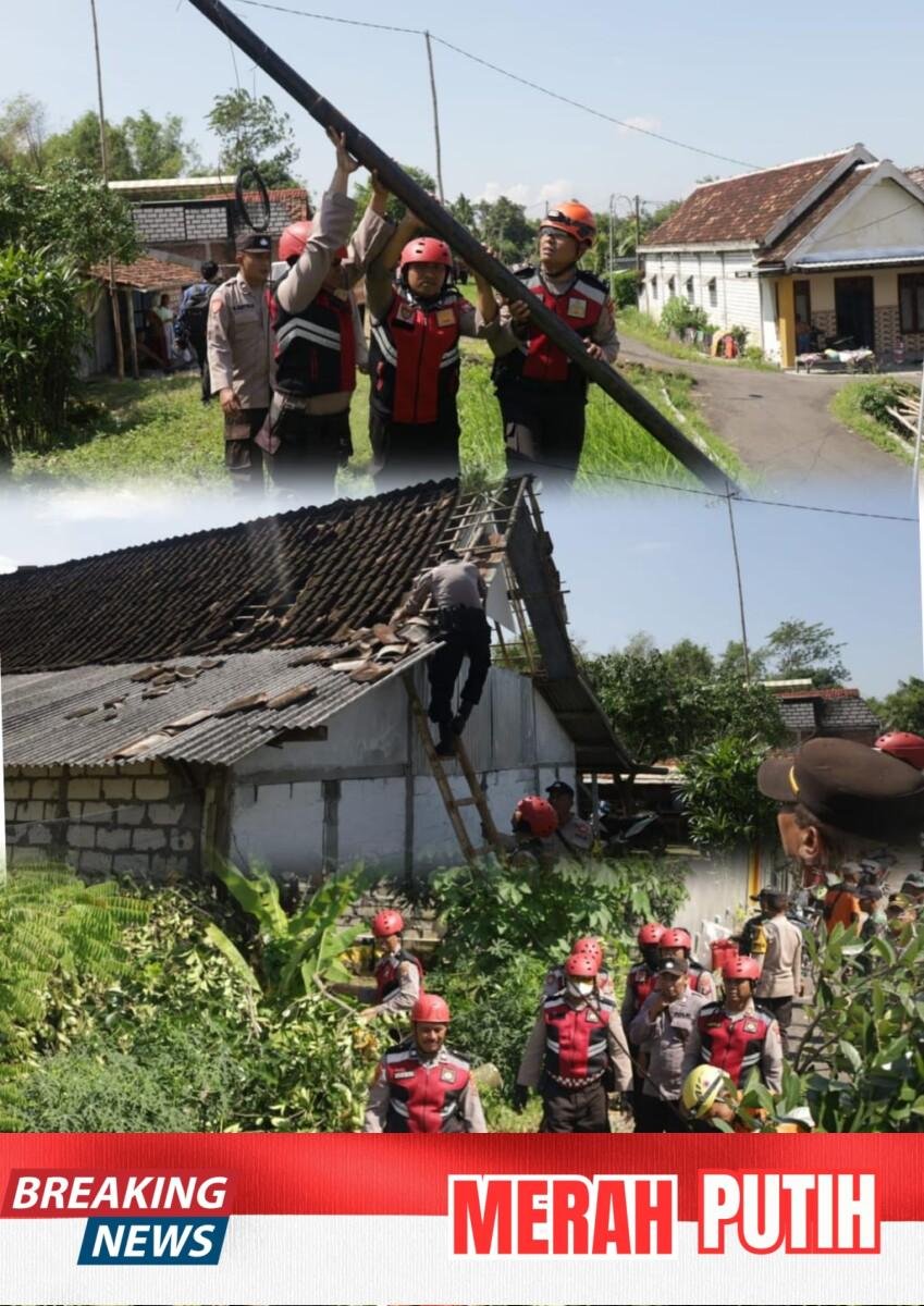 TUBAN – Times Merah Putih.com//Polres Tuban Polda Jatim bersama Badan Penanggulangan Bencana Daerah (BPBD) Kabupaten Tuban menurunkan personel untuk membantu masyarakat Desa Tegalrejo, Kecamatan Widang, yang terdampak bencana angin puting beliung, Senin (02/02/2026).