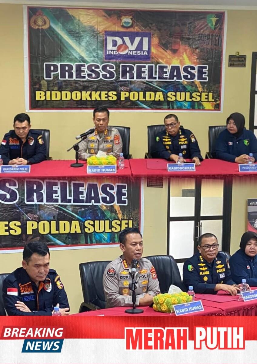 Konferensi Pers tersebut dipimpin langsung oleh Kabid Humas Polda Sulsel Kombes Pol. Didik Supranoto, S.I.K., M.H., didampingi Kabiddokkes Polda Sulsel, perwakilan Pusdokkes Polri selaku Kabid DVI, serta perwakilan Bareskrim Polri melalui Kabiddaktikkrim Pusident.