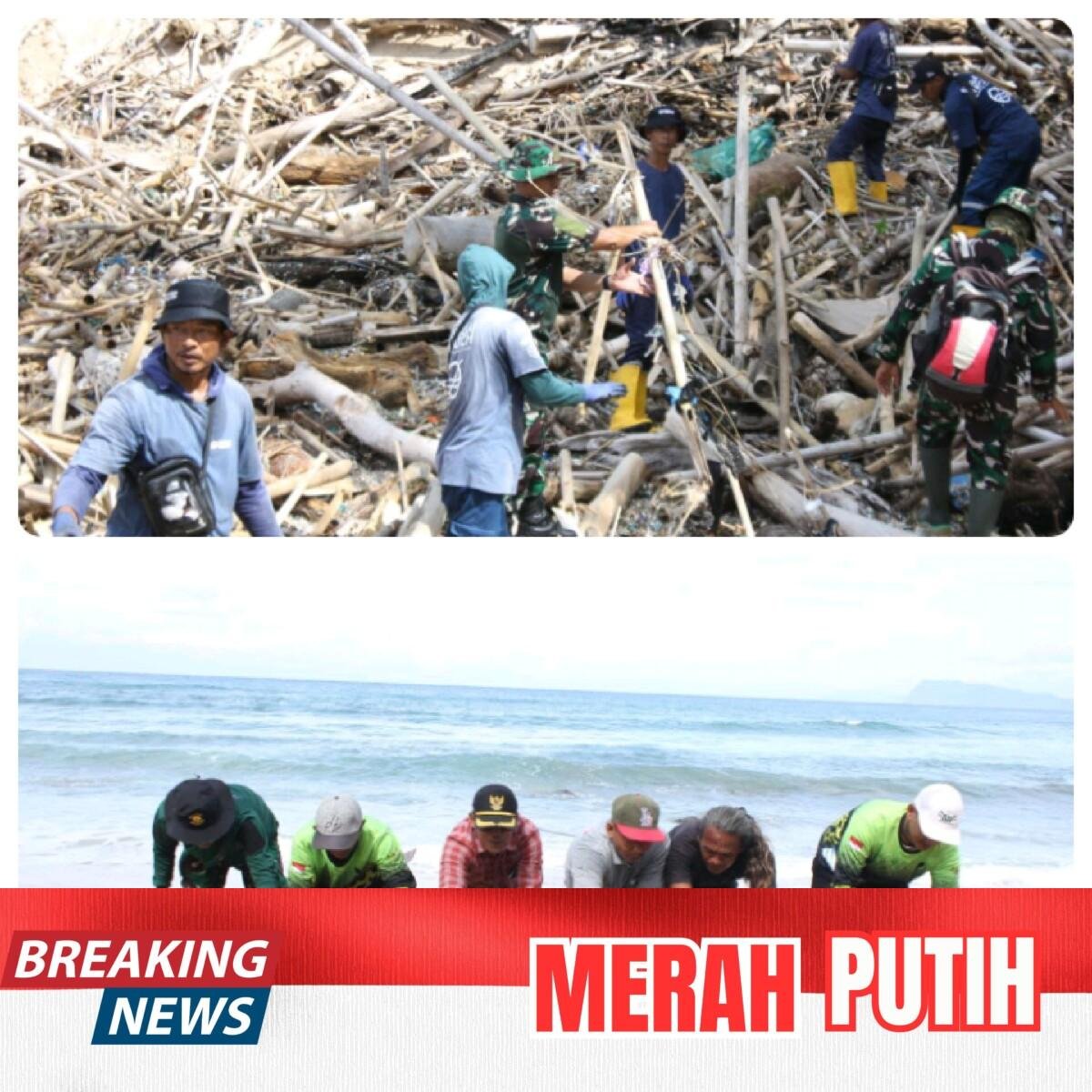 Banyuwangi -Times Merah Putih.com//Aksi heroik terpancar di pesisir Pantai Pancur, Taman Nasional Alas Purwo, saat ratusan personel gabungan dari TNI, Polri, Pemerintah Daerah, hingga pelajar bersatu padu dalam “Gerakan ASRI” (Aman, Sehat, Resik, Indah) pada Kamis (05/02). Bukan sekadar memungut sampah plastik, para relawan ini mengandalkan kekuatan gotong royong yang luar biasa untuk mengevakuasi batang-batang pohon raksasa yang terdampar di sepanjang garis pantai. Dipimpin langsung oleh Kasdim 0825 Mayor Suprapto, kegiatan ini mengubah wajah pesisir menjadi lebih lapang dan estetis, membuktikan bahwa soliditas lintas sektor adalah kunci utama dalam menjaga kelestarian wilayah konservasi sekaligus meningkatkan keamanan bagi para wisatawan.